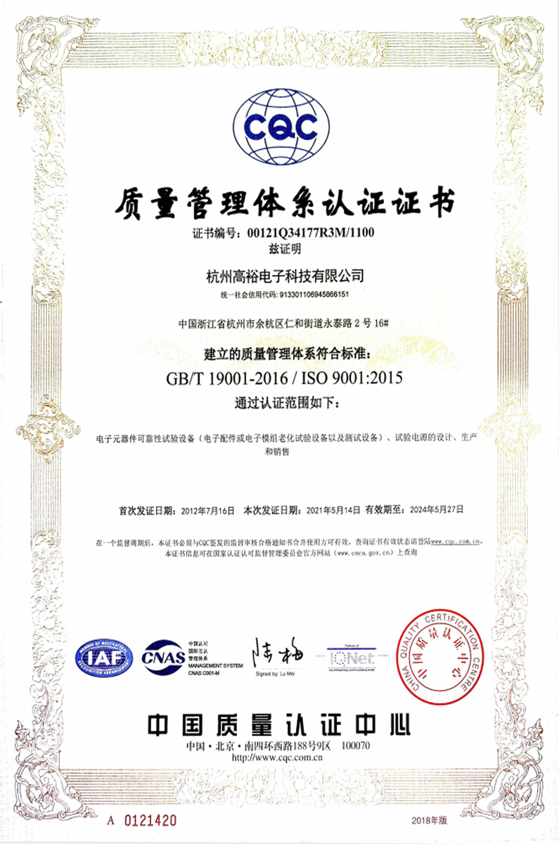 質(zhì)量管理體系認(rèn)證證書(shū)